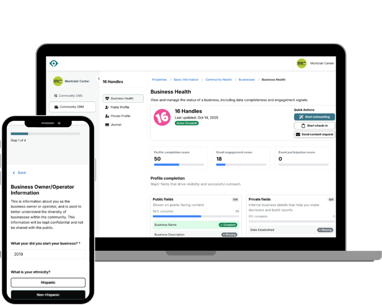 Your businesses are the reason your district exists. Keeping up with dozens, even hundreds, of business owners means knowing who's struggling, who's thriving, and who's about to make a decision that could have been prevented with a timely conversation. Without a system, those relationships live in your head, your inbox, and scattered notes that don't survive staff turnover.